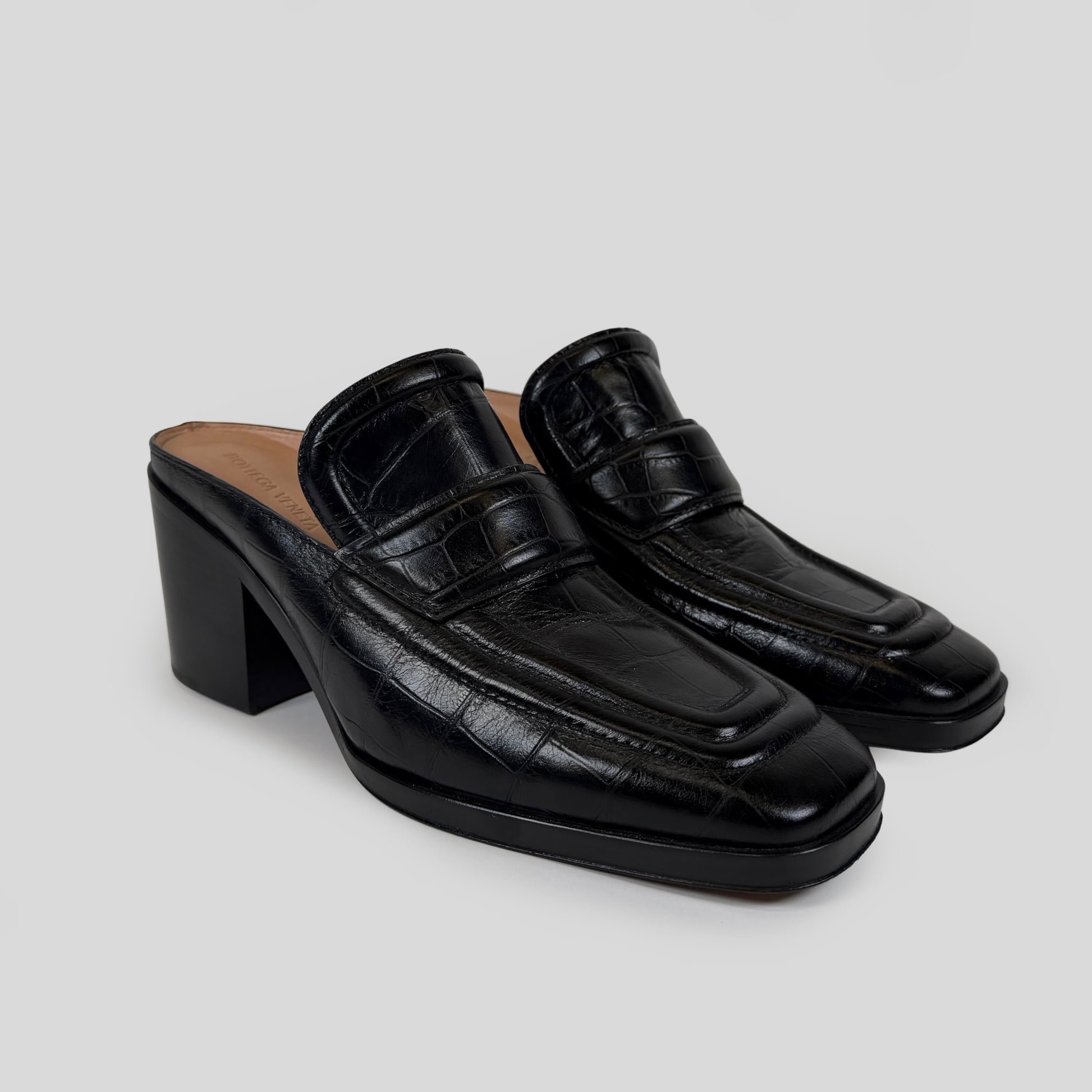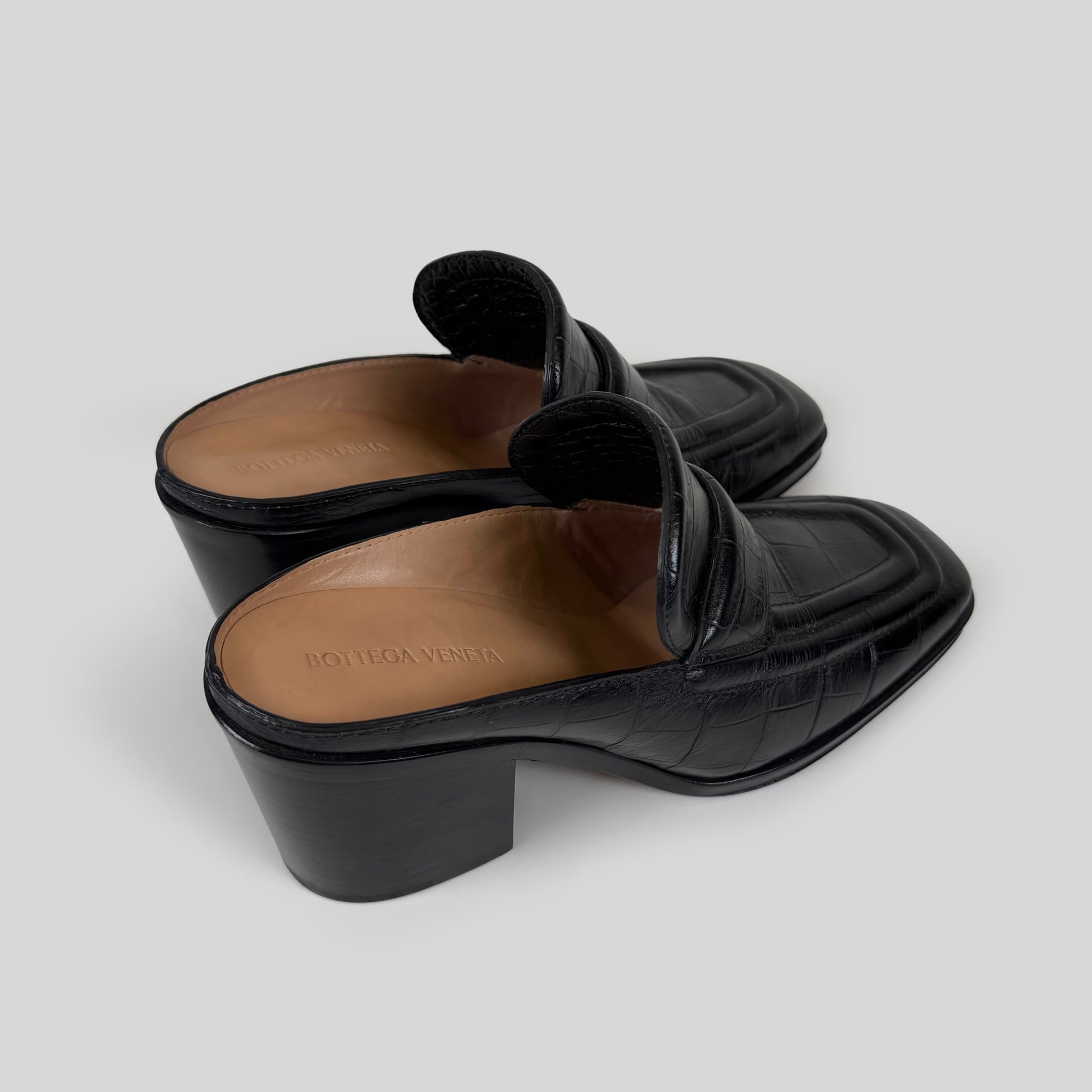 Bottega Veneta Croc-Embossed Leather Loafer Mules