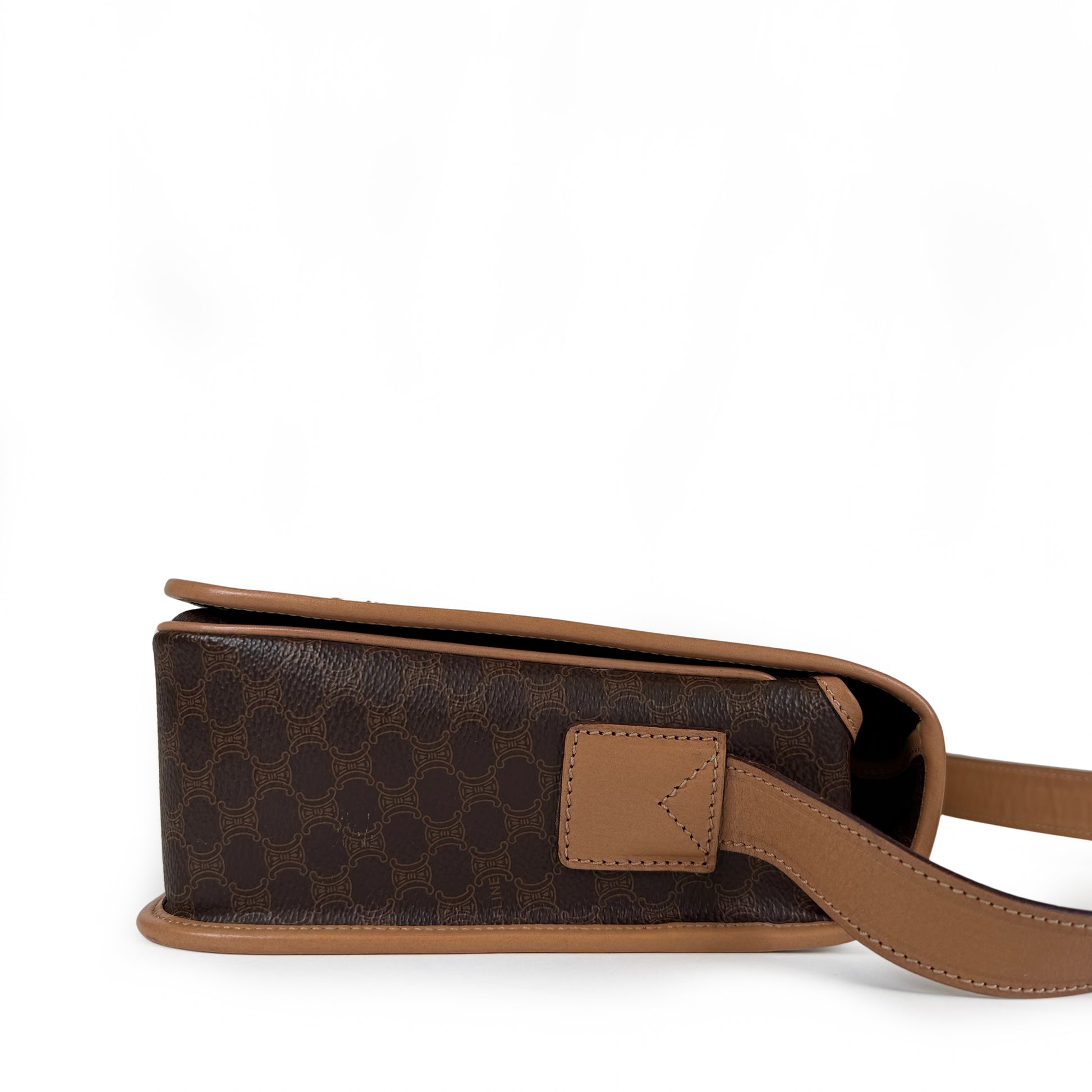 Vintage beauty. Crafted from Macadam canvas with leather trim, gold-tone hardware, front flap with clasp closure, leather interior, and adjustable shoulder strap.