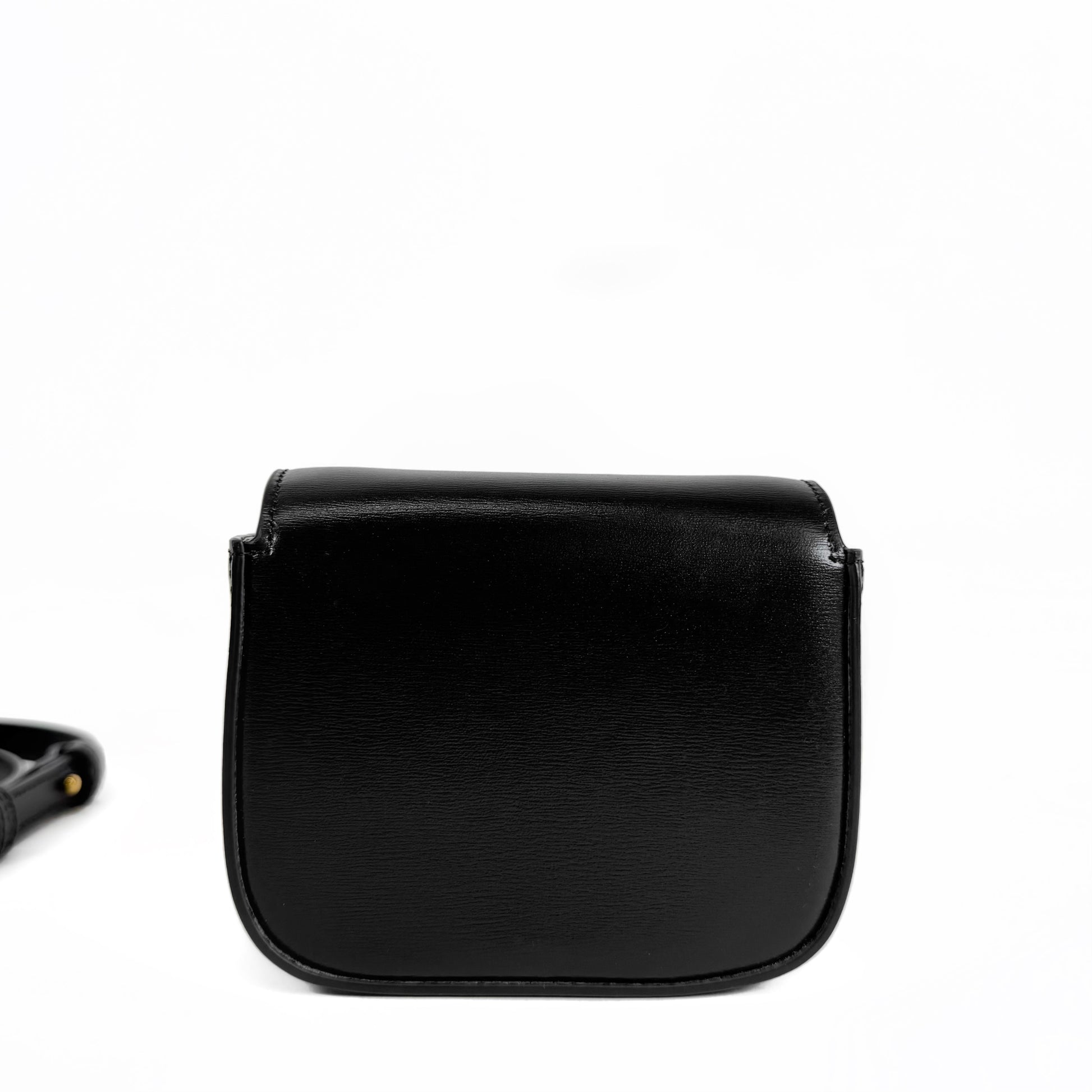 Crafted from shiny calfskin leather with gold-tone hardware, signature Triomphe snap button closure, leather interior and removable adjustable strap. New price: $1700