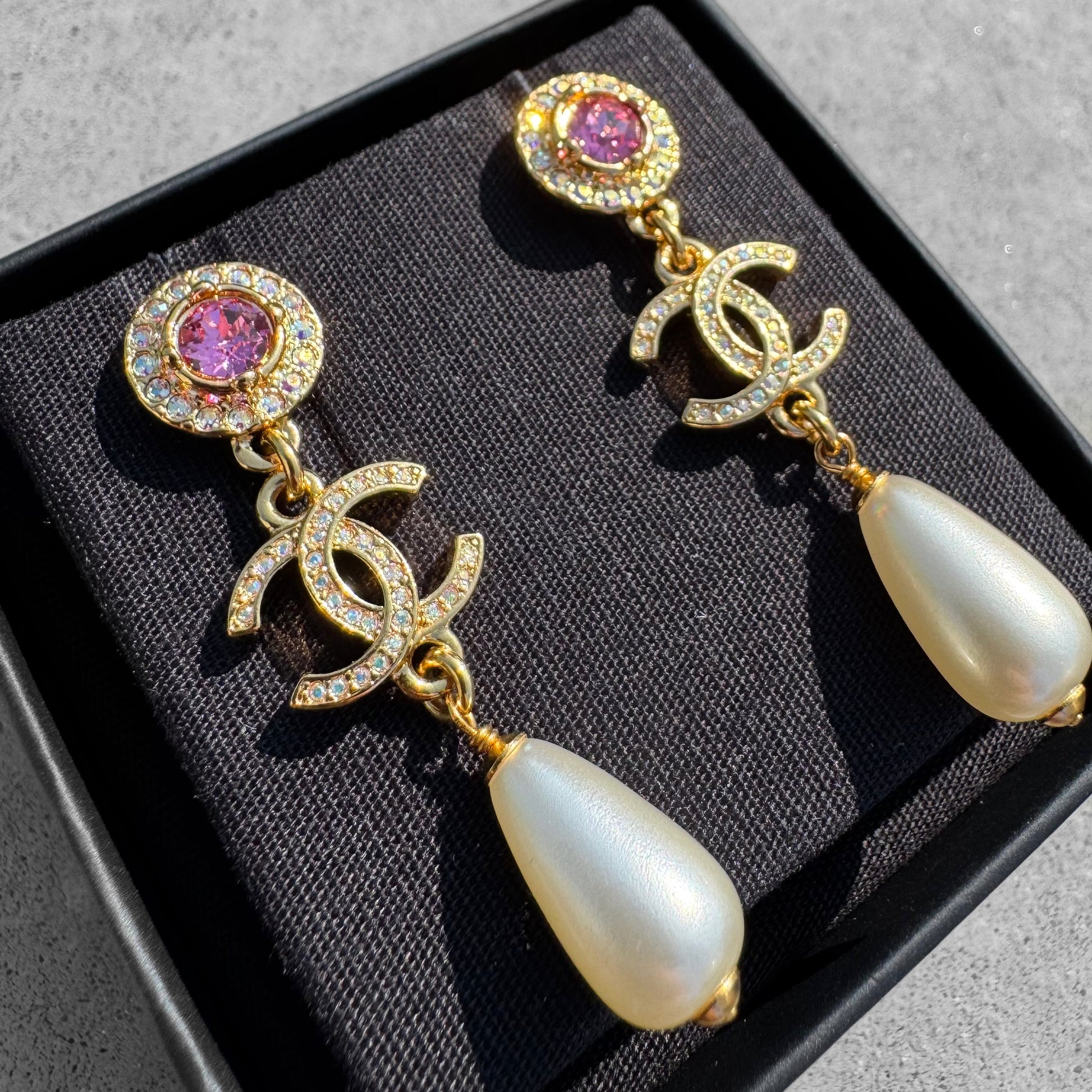 Make a Statement. Gold-tone metal earrings with sparkling crystal embellishment and pearl drop.