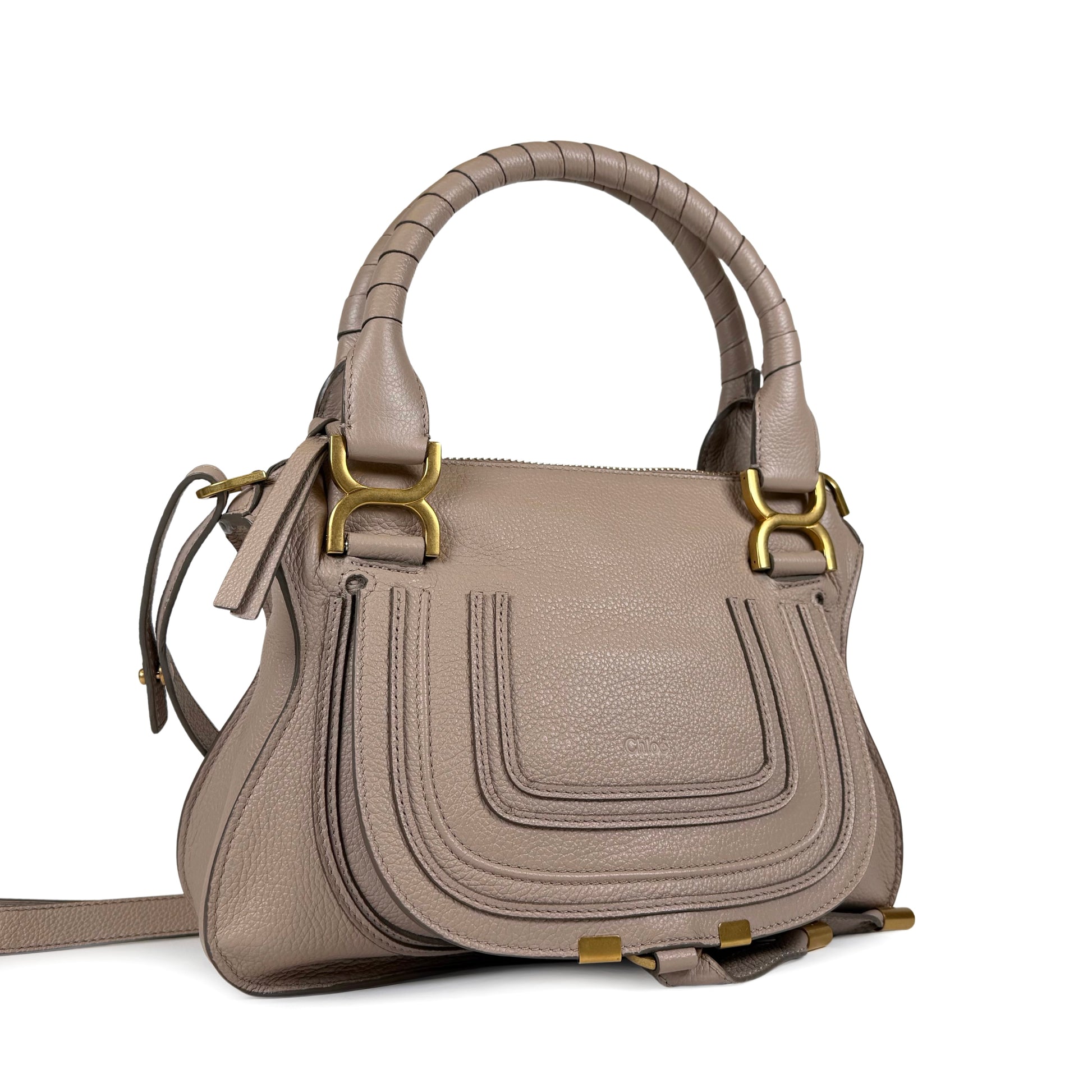 Gorgeous! Crafted from grained calfskin leather with decorative saddle stitching, antique gold-tone hardware, double C buckles, canvas interior, rolled handles and removable shoulder strap. New price: $3300