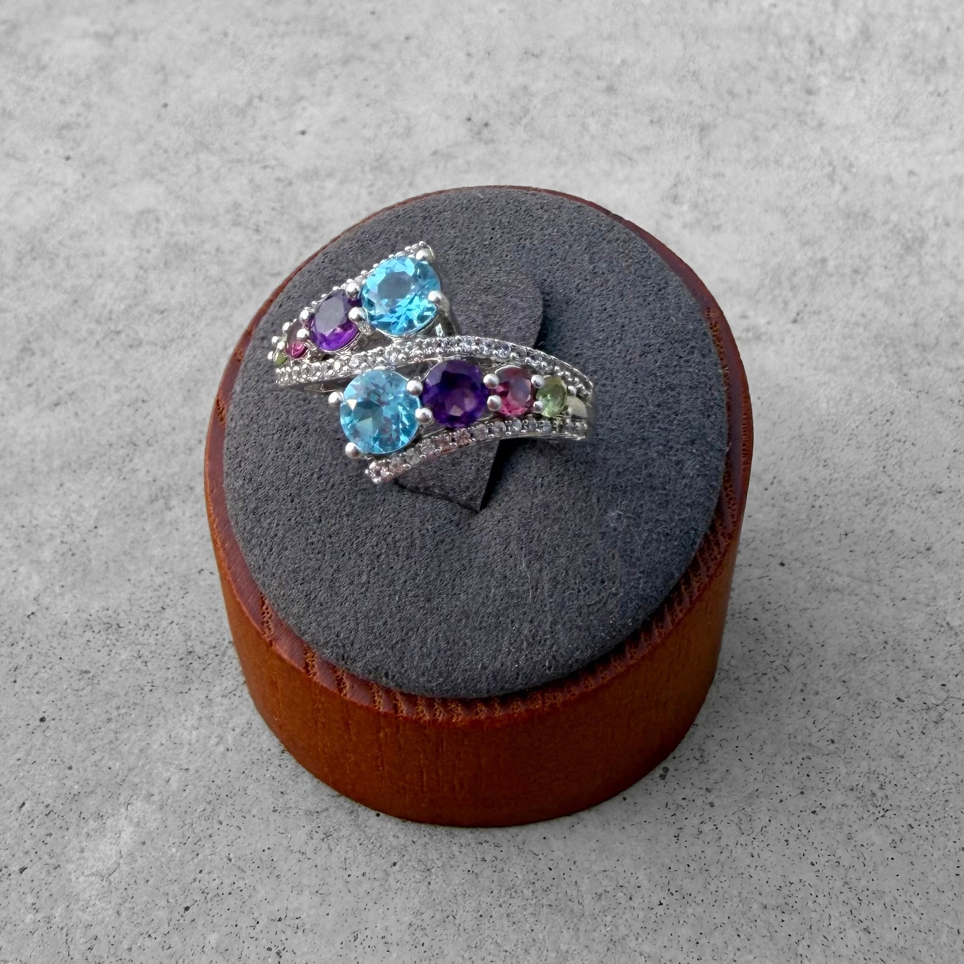Custom Blue Topaz Amethyst Tourmaline Peridot White Topaz Ring