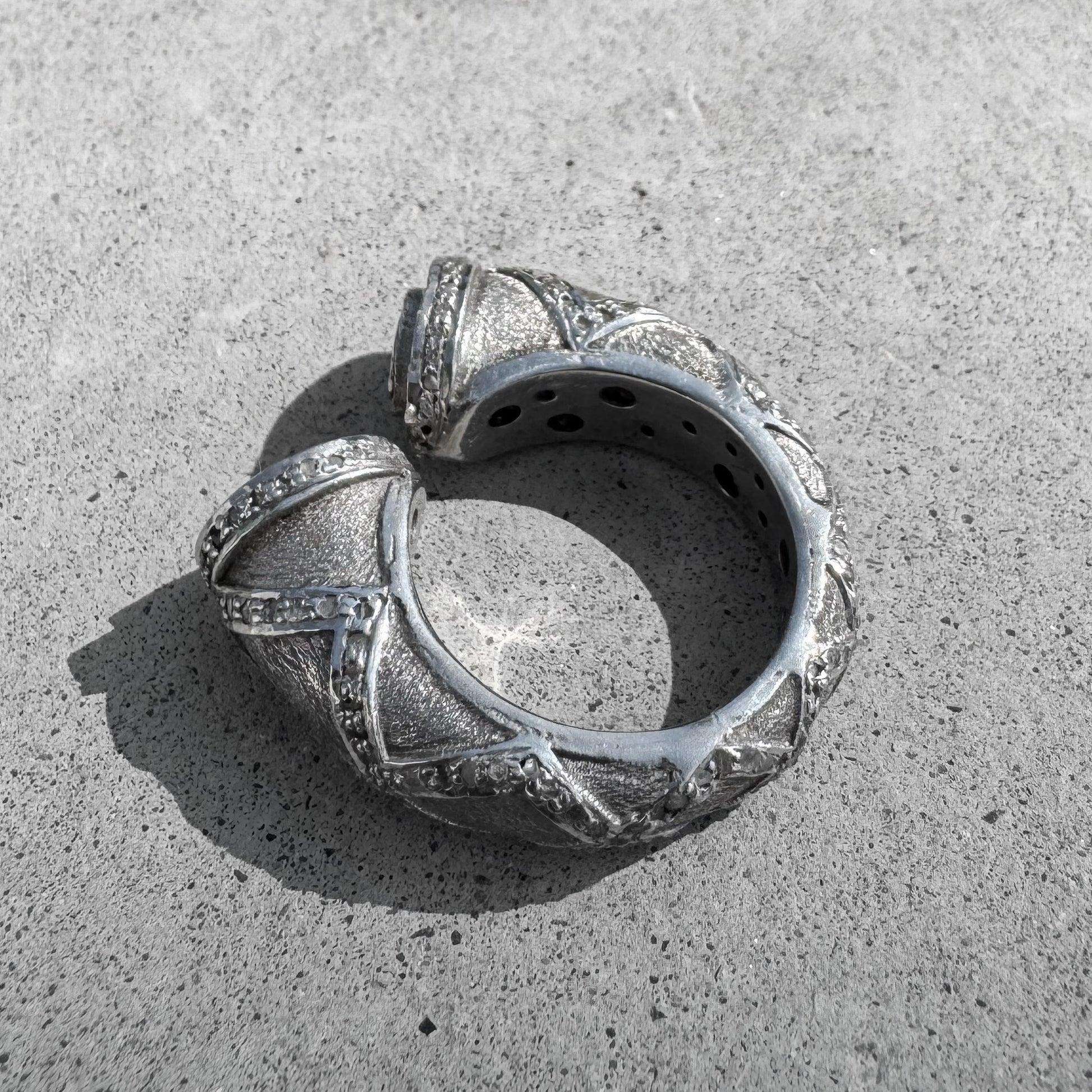 Custom Sterling Silver Diamond Tapered Saddle Ring