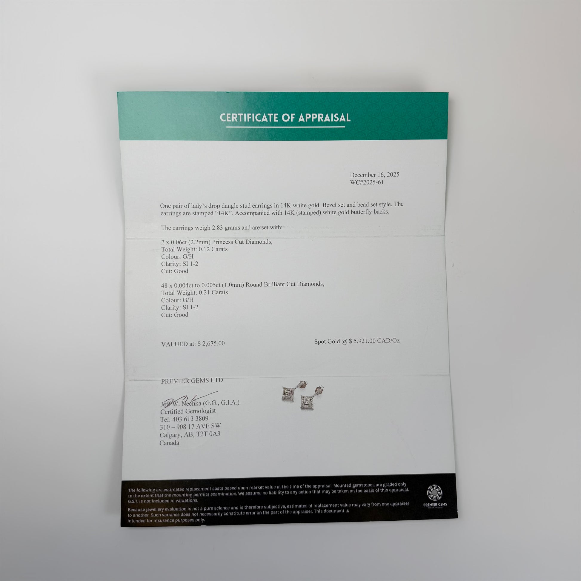Add some sparkle. White gold drop dangle stud earrings with diamonds. Appraisal: $2675