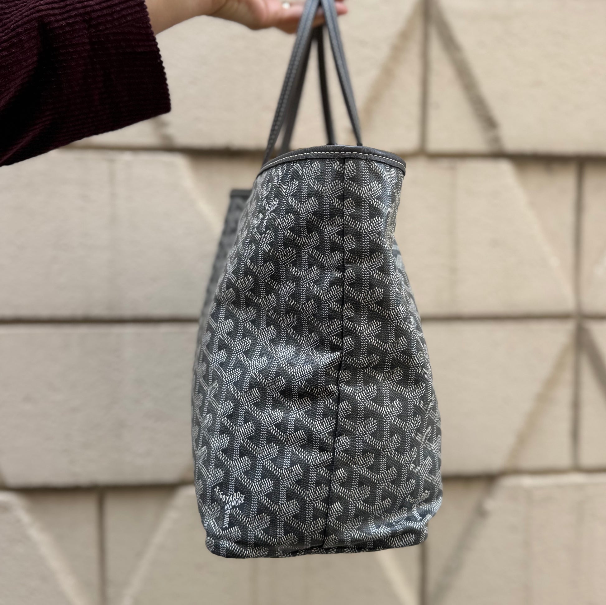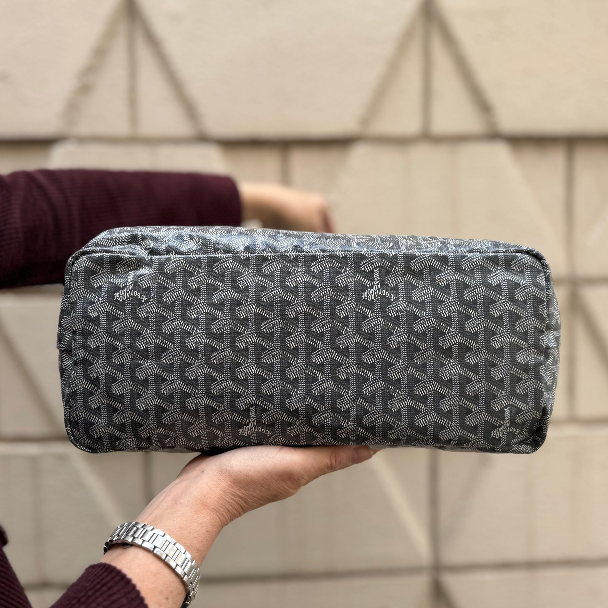 Crafted from signature Goyardine canvas with calfskin leather trim, silver-tone hardware, canvas interior with removable pouch and dual handles.