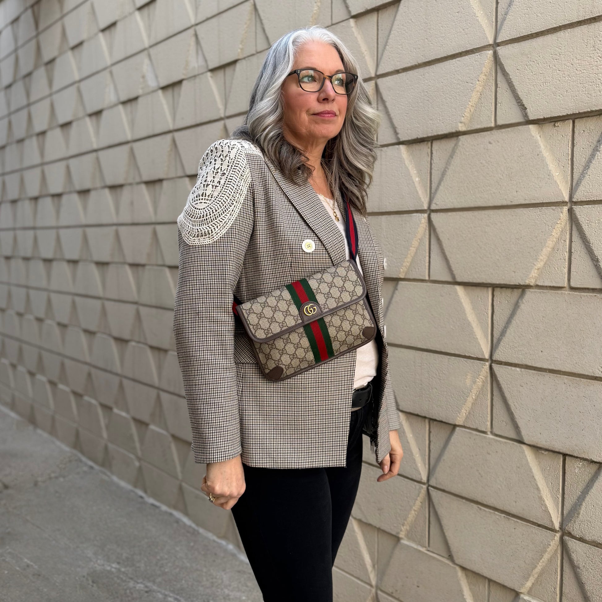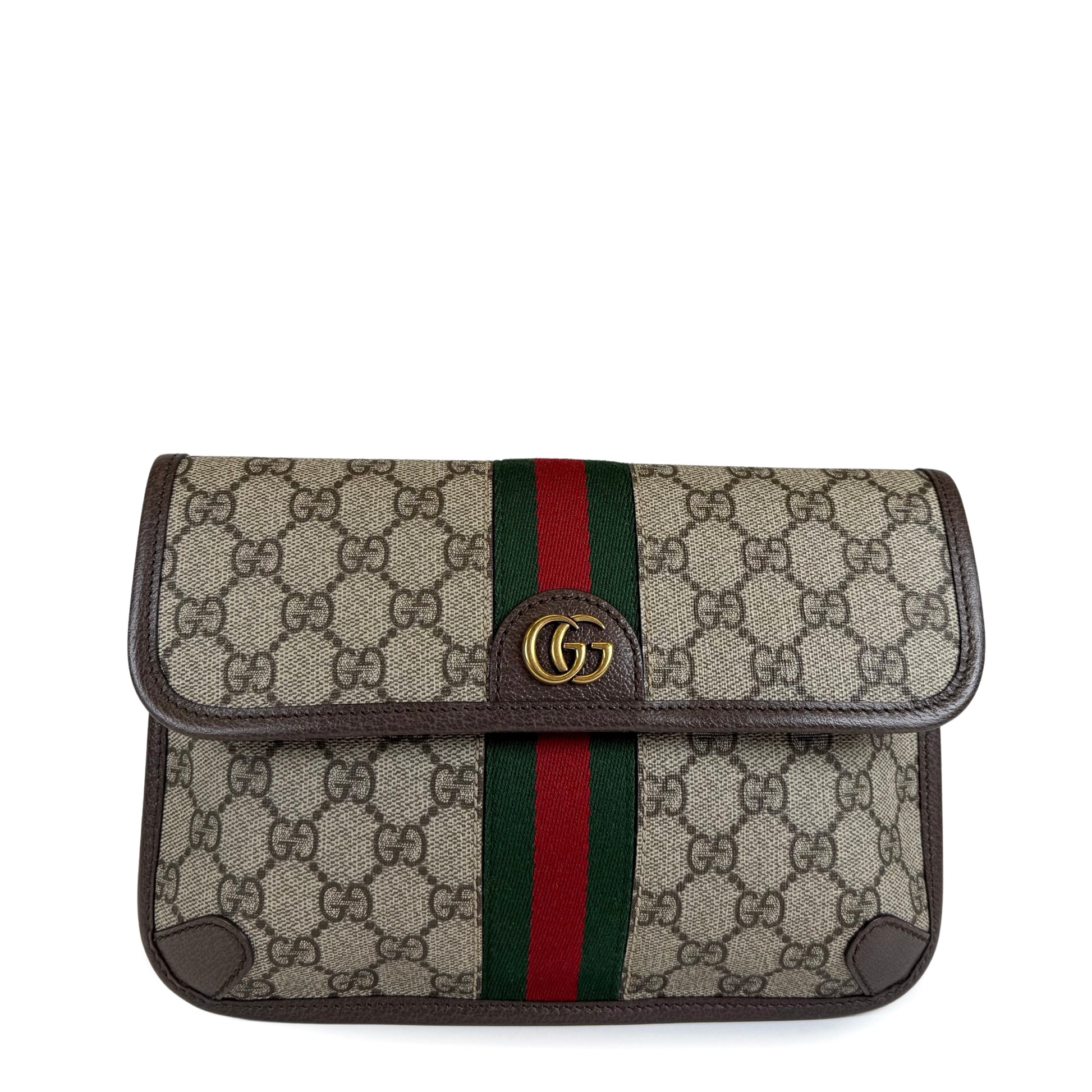 Loving this easy access bag! Crafted from GG Supreme canvas with brown calfskin leather, gold-tone hardware, signature interlocking 'G' logo, green and red web accent, front flap with magnetic snap button closure, textile interior and adjustable red and navy web crossbody strap. New price: $1680