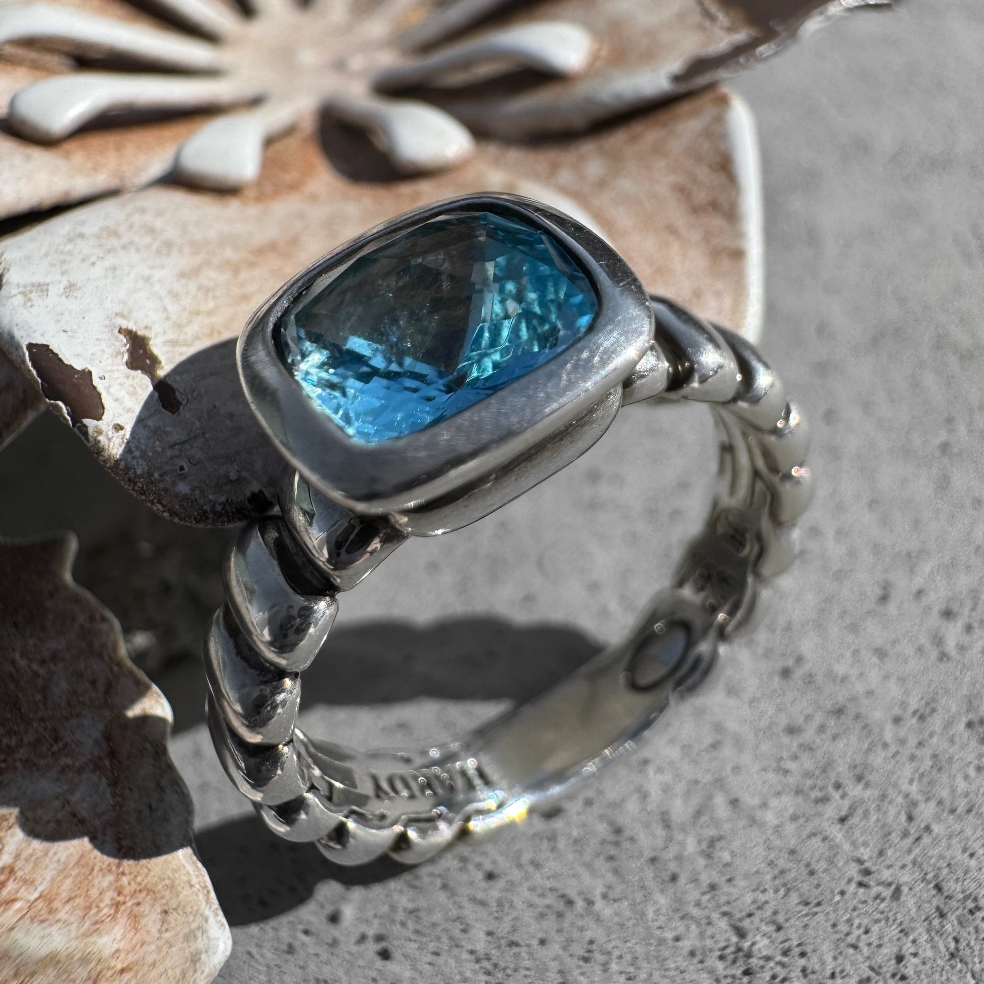 Your New Favorite. Textured design sterling silver ring with Blue Topaz.