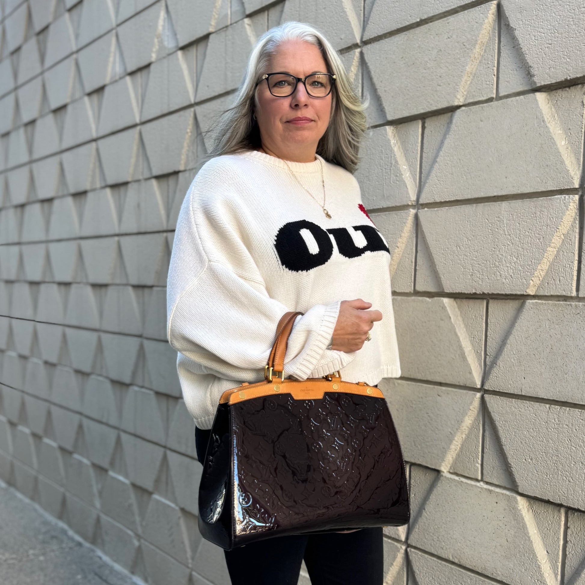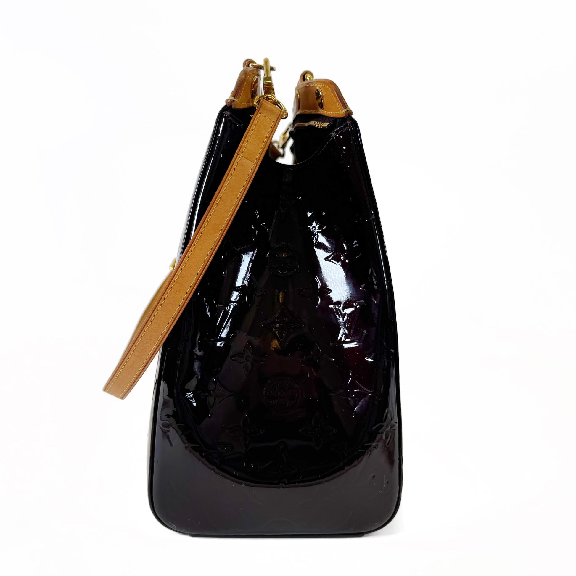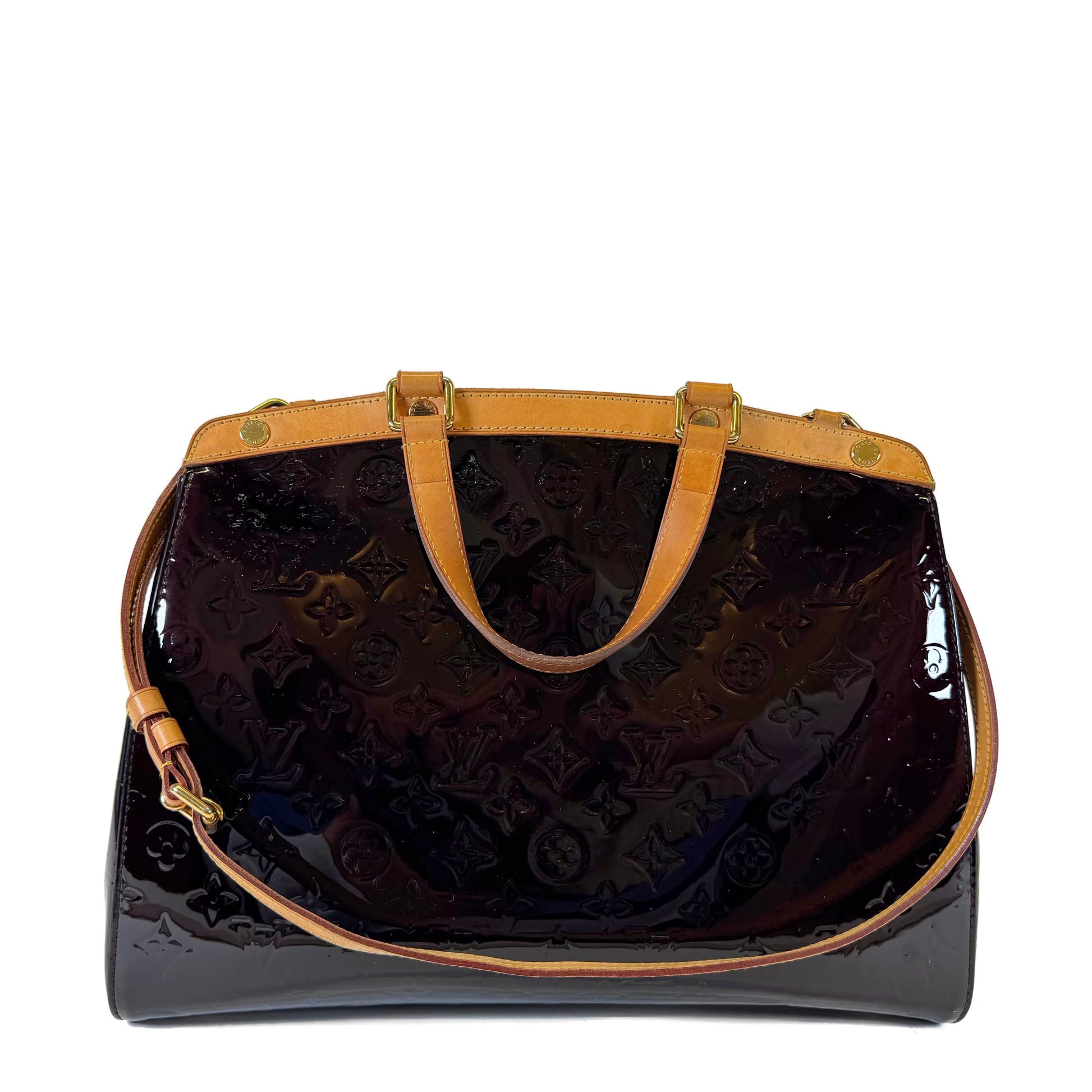 That color! Crafted from Vernis leather with Vachetta leather trim, gold-tone hardware, top zip closure, protective feet, textile interior, top handles and removable adjustable shoulder strap.