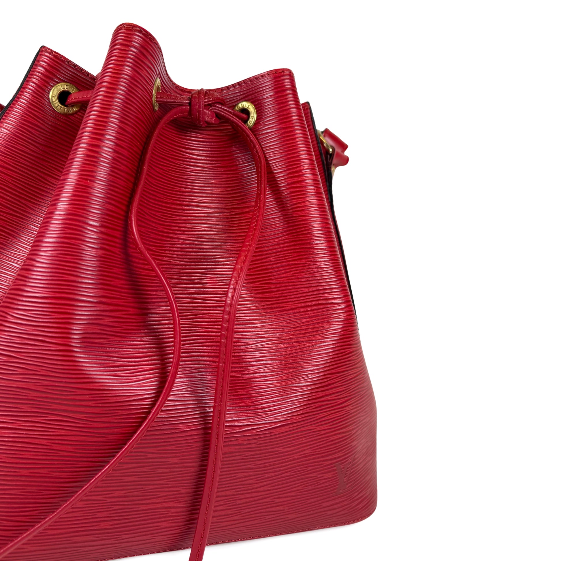 A vintage lovely ♥️ Crafted from Epi leather with drawstring closure, gold-tone hardware, red microfibre interior, adjustable shoulder strap.