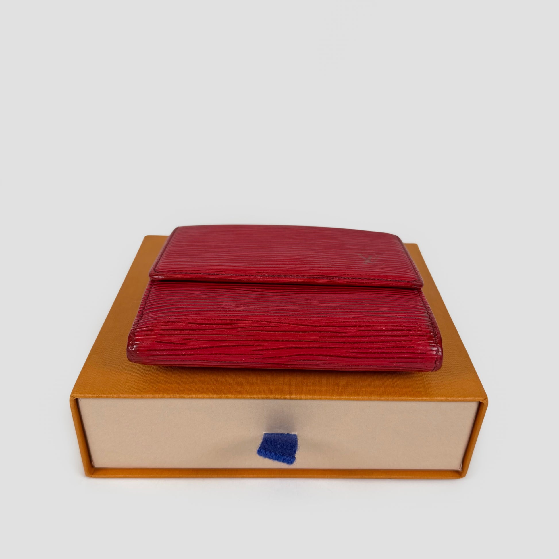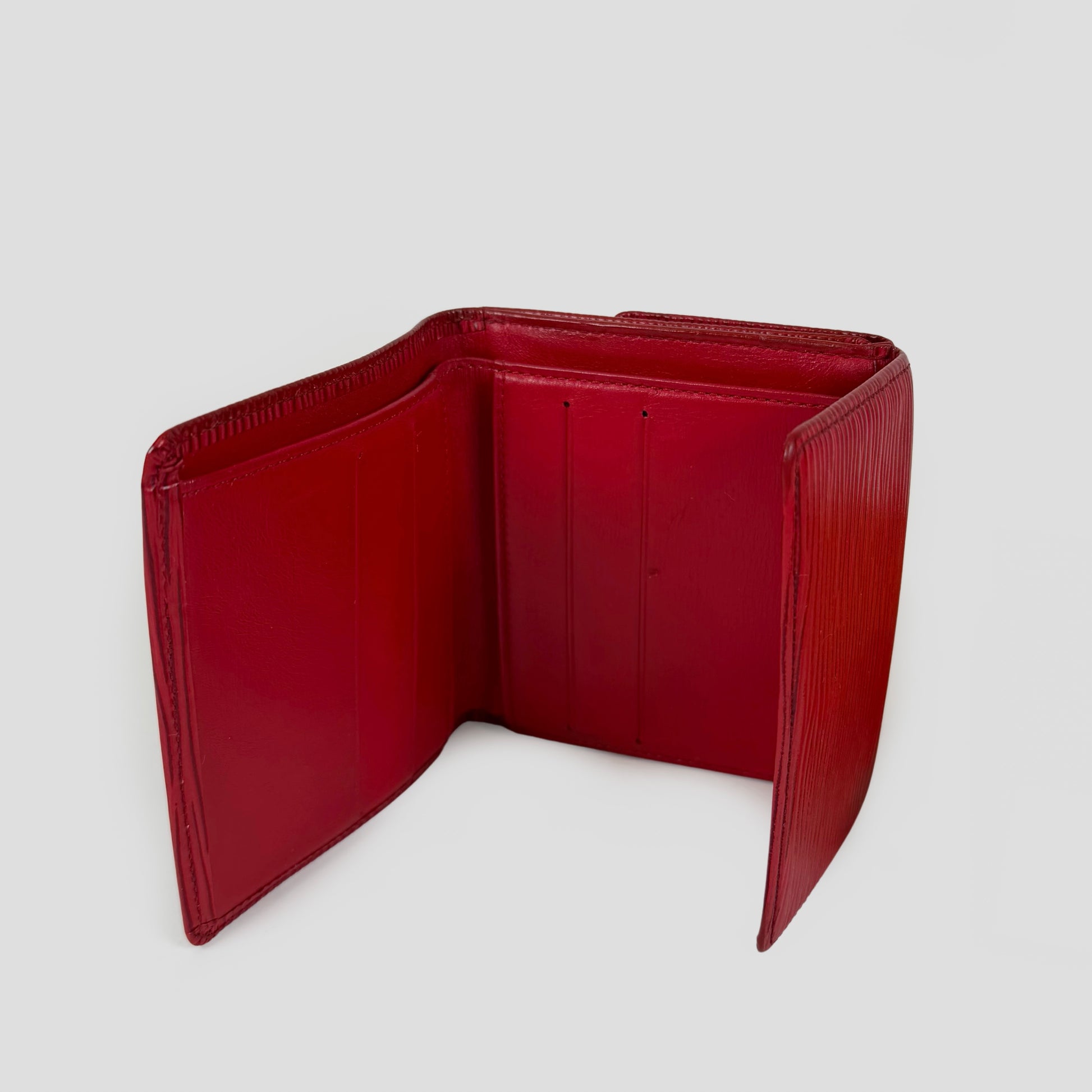 A vintage lovely. Crafted from Epi leather with snap button closure, leather interior with several card slots, open compartment for bills, and separate coin purse.