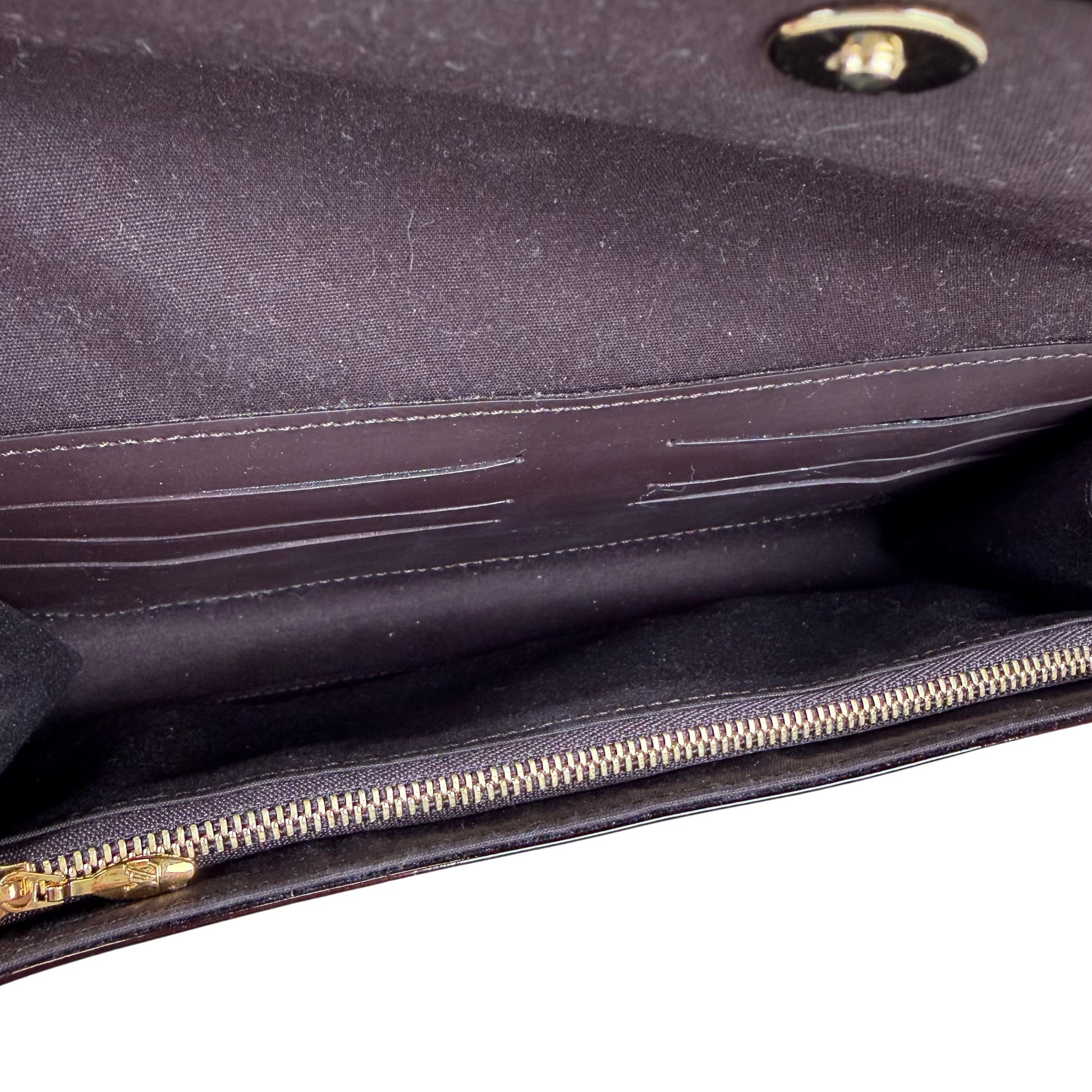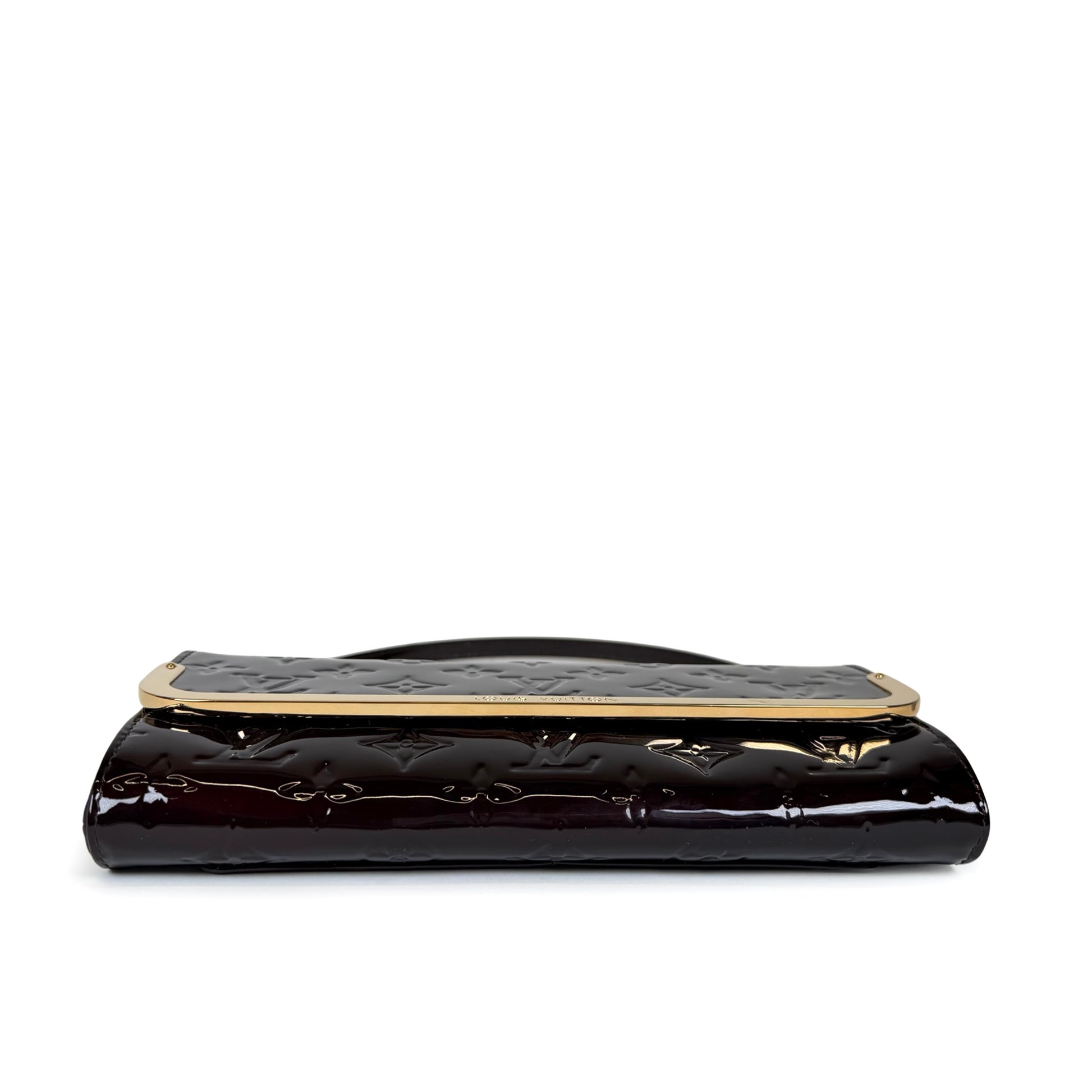 Add to cart equals cardio. Right?! Crafted from monogram Vernis leather with gold-tone frame on the flap, textile and leather interior with card slots and zippered pocket, and removable leather strap.