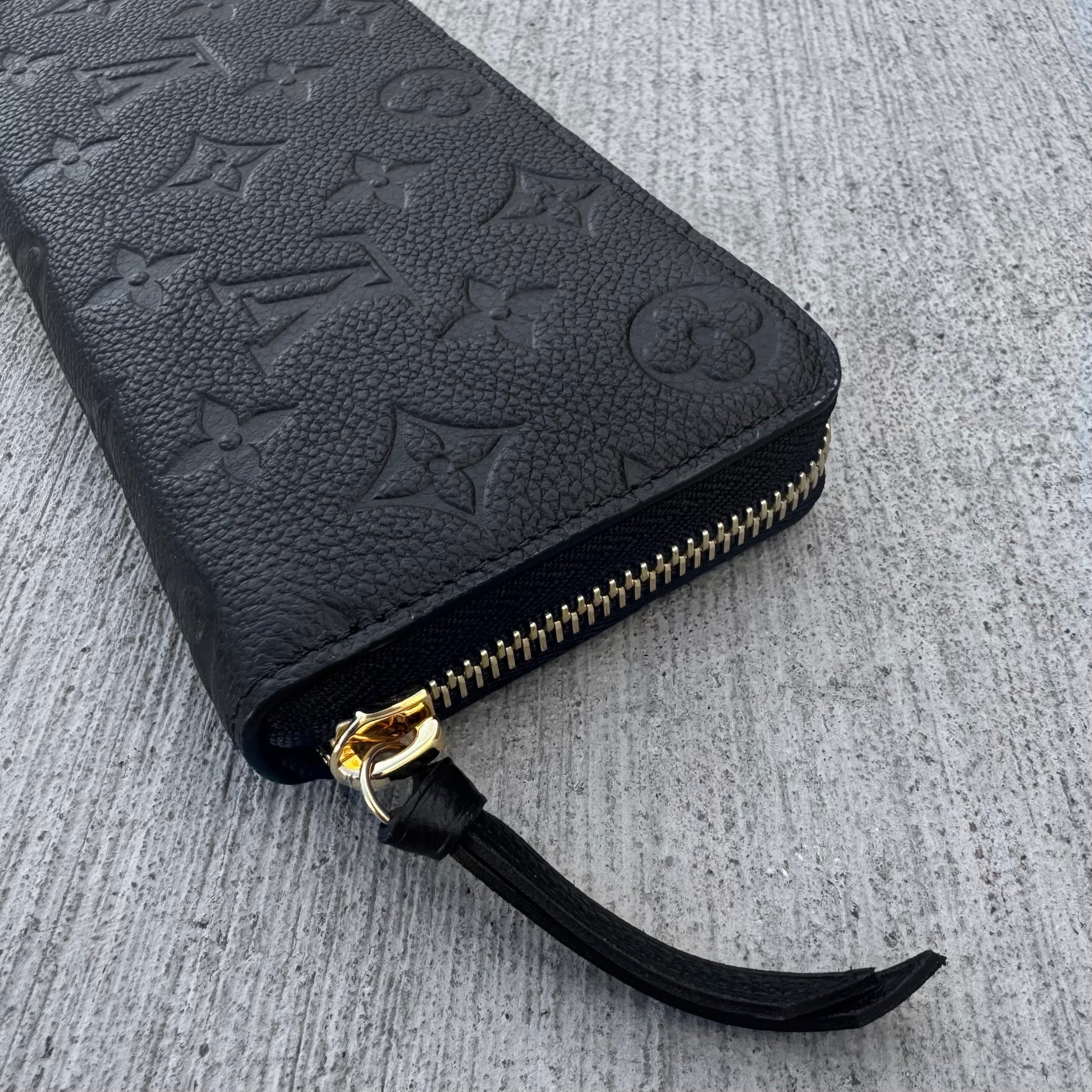 The Perfect wallet. Crafted from Empriente leather with gold-tone hardware, zip around closure, leather interior with card slots and zip compartment.