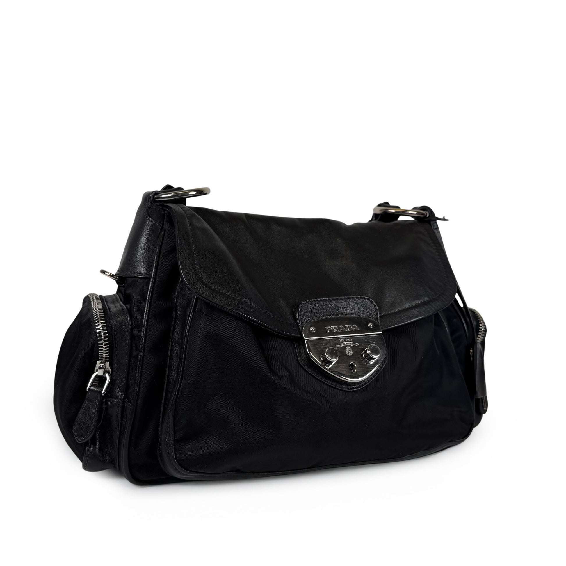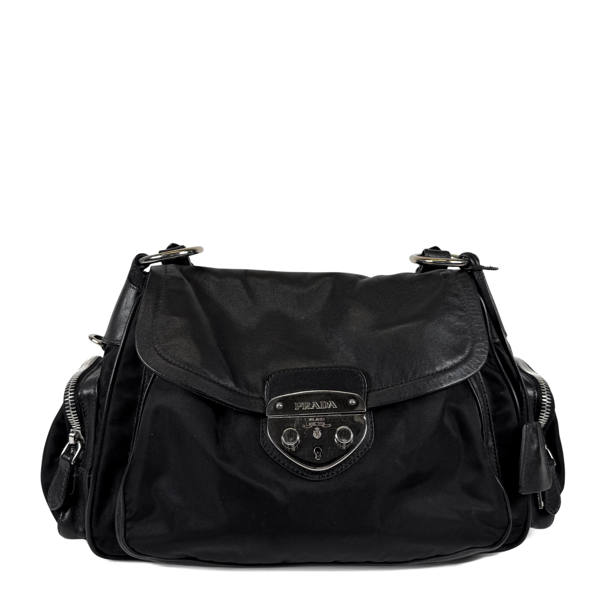 Prada Nylon Leather Pushlock Bag