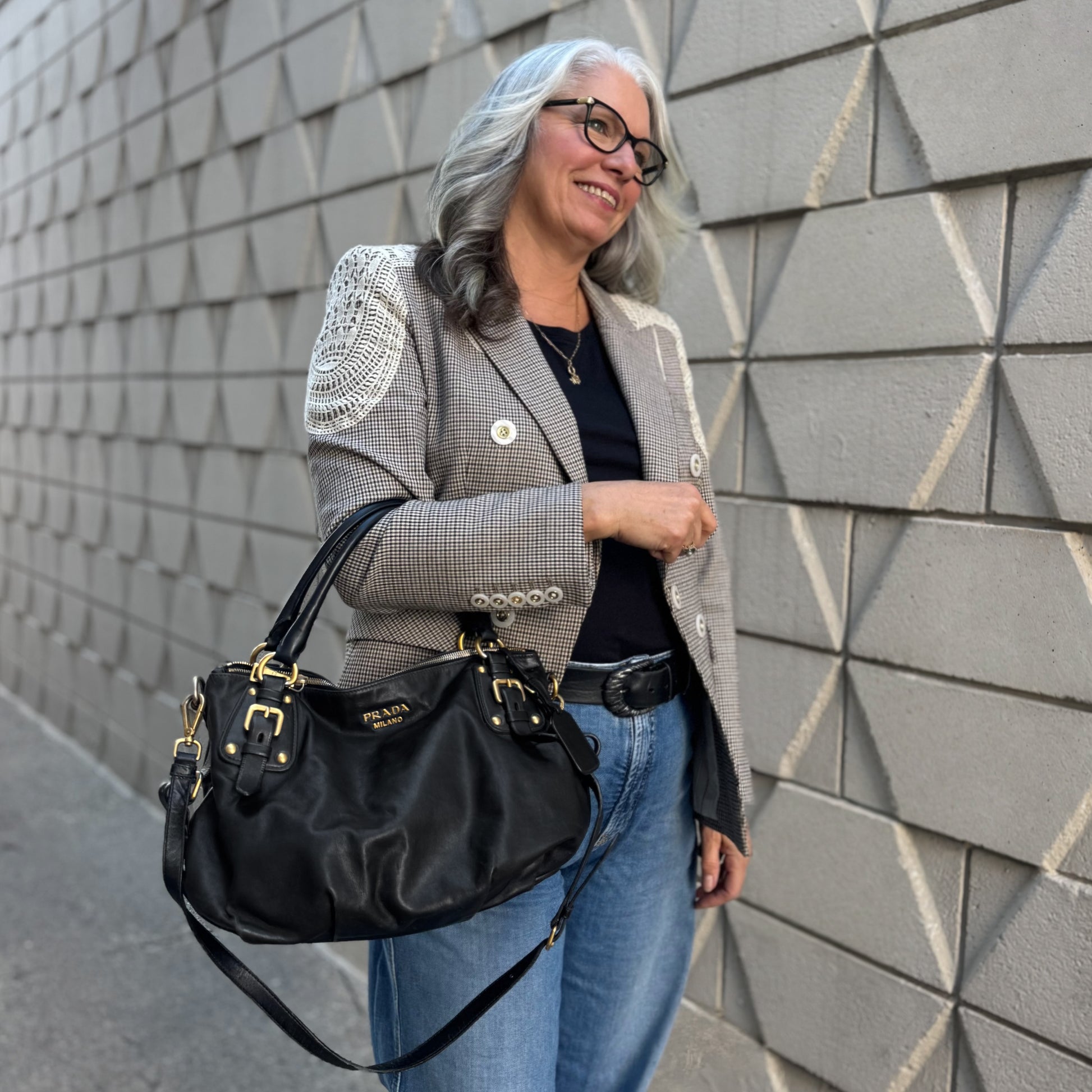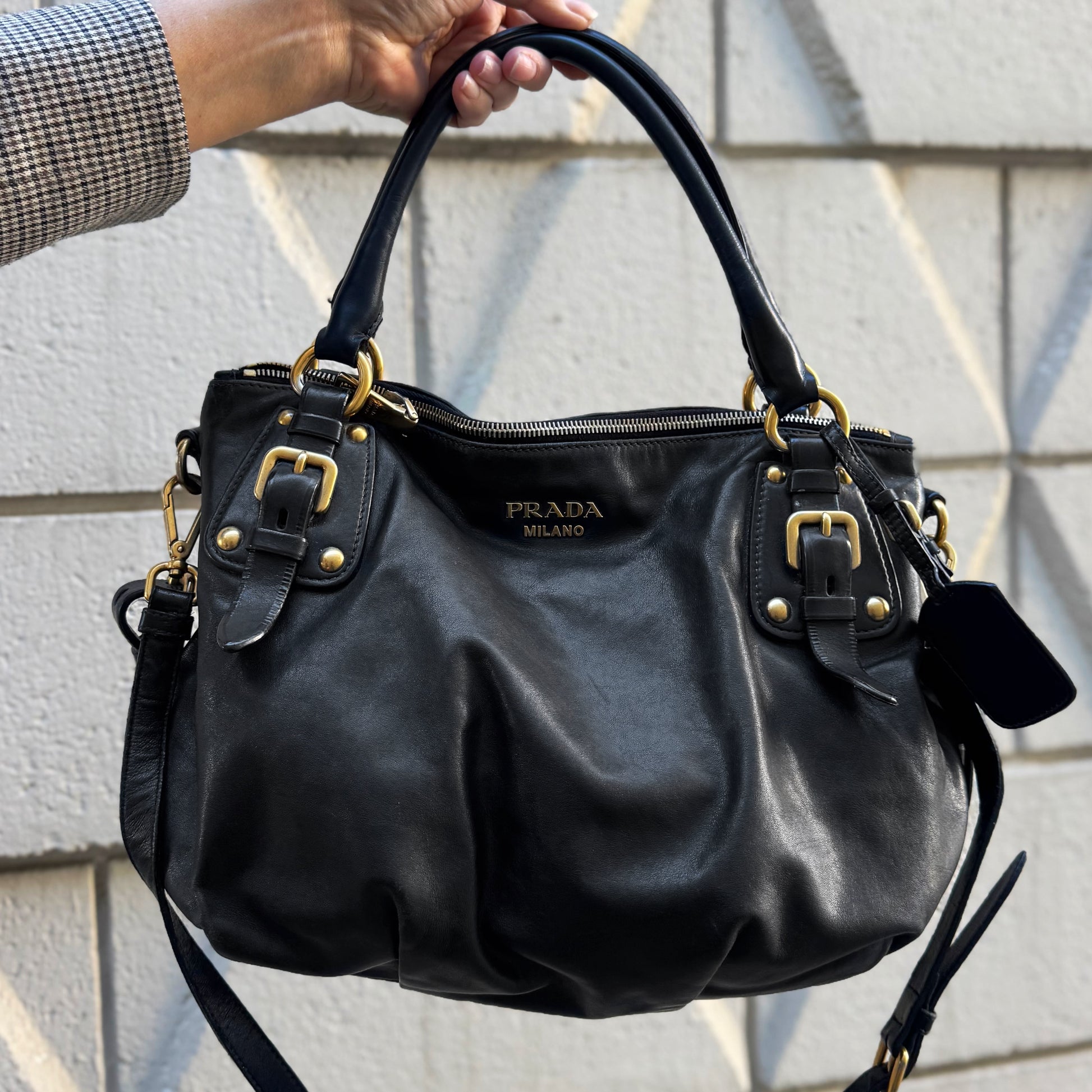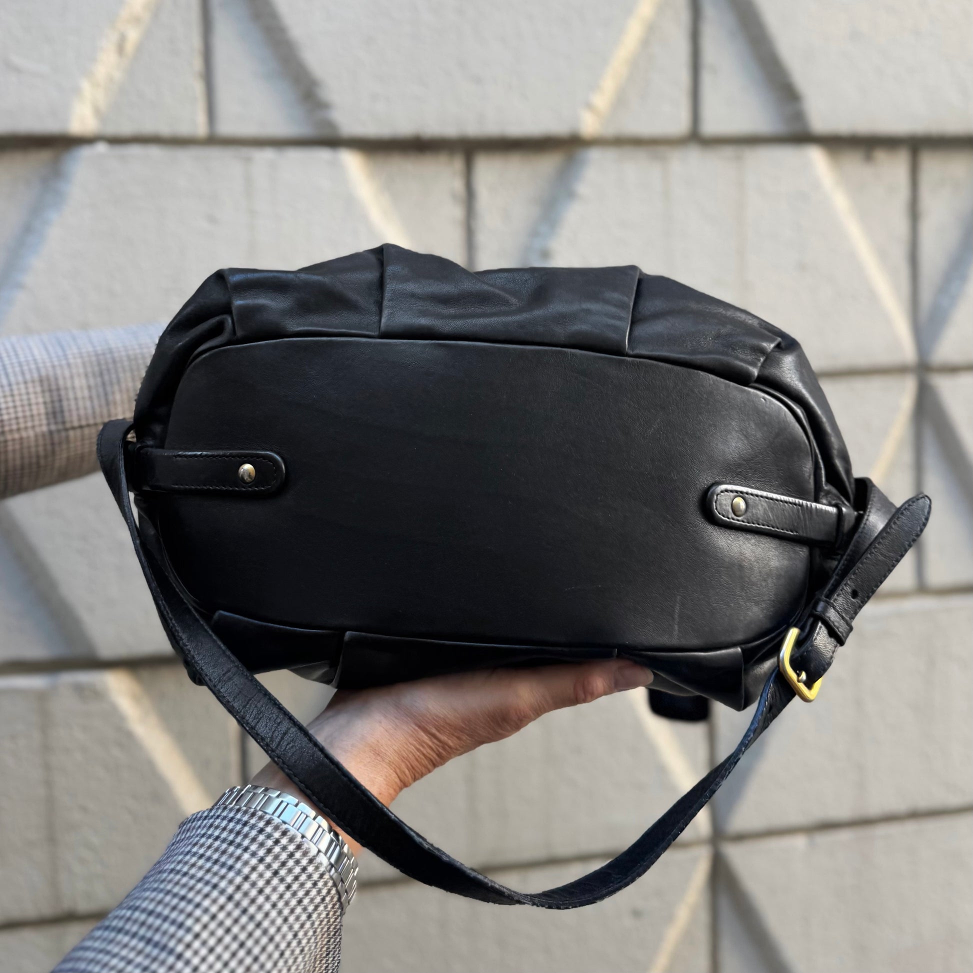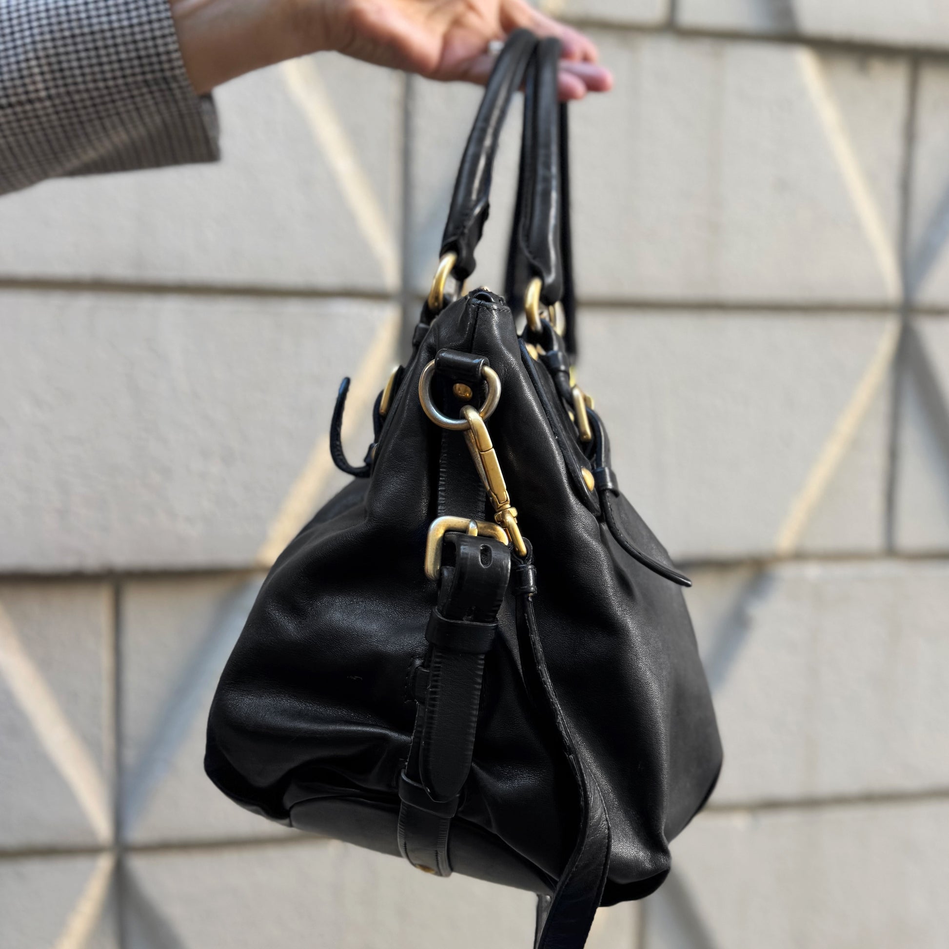 This one is ready to go. Crafted from soft calfskin leather with gold-tone hardware, studs and buckles details, top zip closure, monogram textile interior, dual rolled handles and removable adjustable strap.