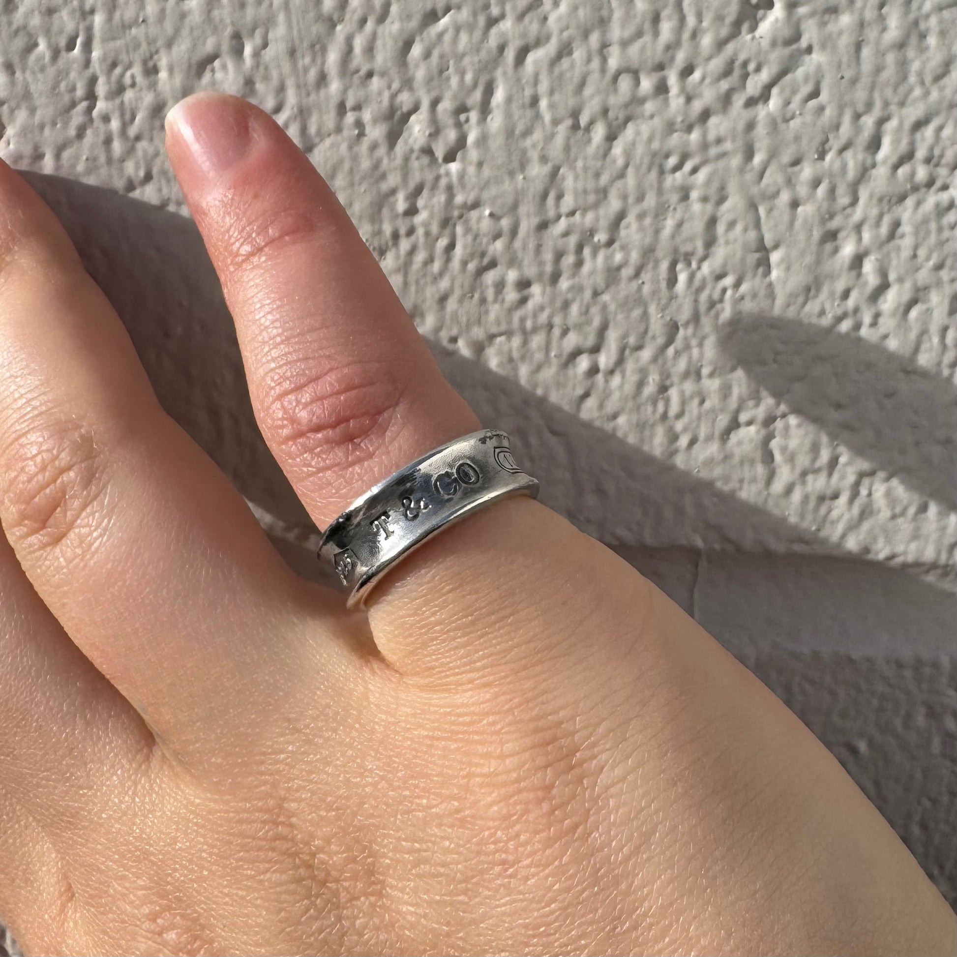 Iconic. Sterling silver wide band ring with brand’s signature engraving.