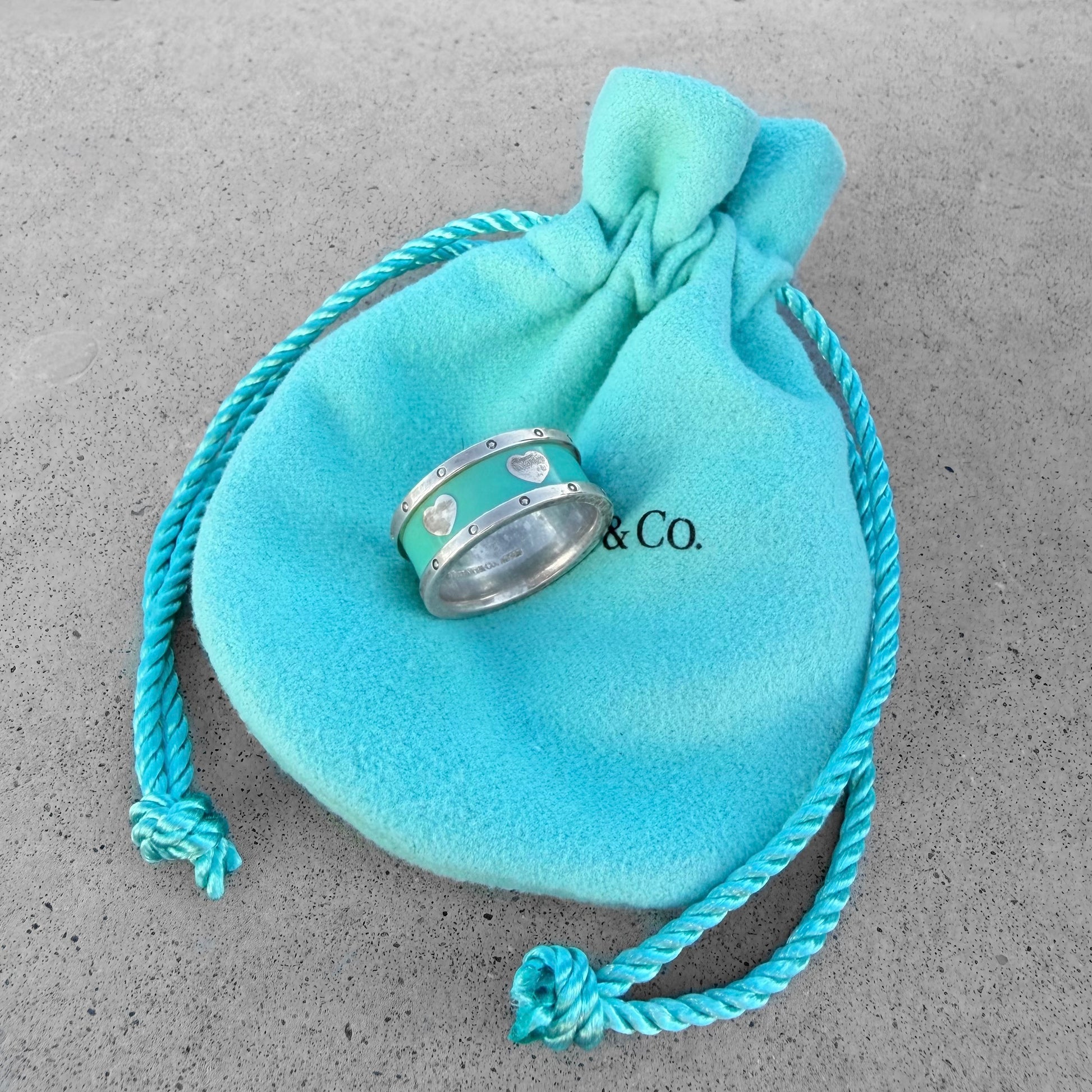 Tiffany & Co. Sterling Silver Blue Enamel Heart Band Ring