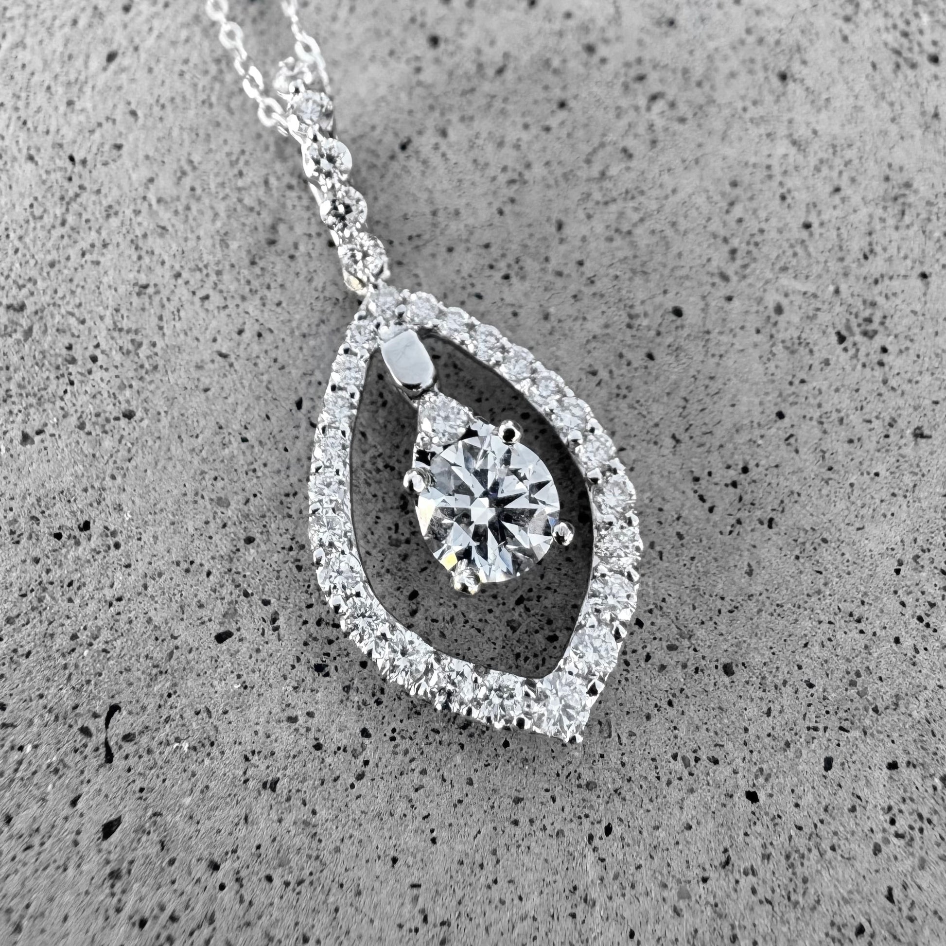 White gold chain with white gold teardrop diamond pendant. Appraisal: $8100